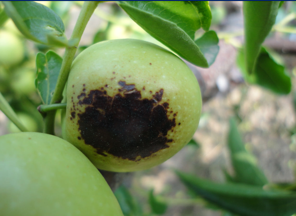 症状:褐斑病就是枣农通常说的僵烂病、烂果病。属于真.菌性.病害,一般色时大量发病,病部稍有凹陷或皱褶,病果肉为浅土黄.色小斑块,病组织松软呈海绵状坏死,味苦,不堪食用,后期(果肉呈软腐状,严重时全果软腐。该病主要是和口刺吸害虫有关,口刺吸害虫叮吸后,病菌就会从叮吸口浸入,阴雨、潮湿、闷热天气是该病发生的有利条件。